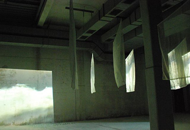 Projektbeschreibung „still/silent“ 2010 – Audiovisuelle Performance in der ortsspezifischen Installation in der Ostrale (Zentrum für zeitgenössische Kunst, Dresden)