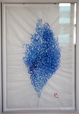 1. o.T: Eine fortlaufende Zeichnungsserie. Mein Versuch ist dabei, wie ich mit der phänomenologischen Ideen gestalten kann, die auf dem Gesetz der Physik basiert und nicht als ein symbolischer Entwurf ist.